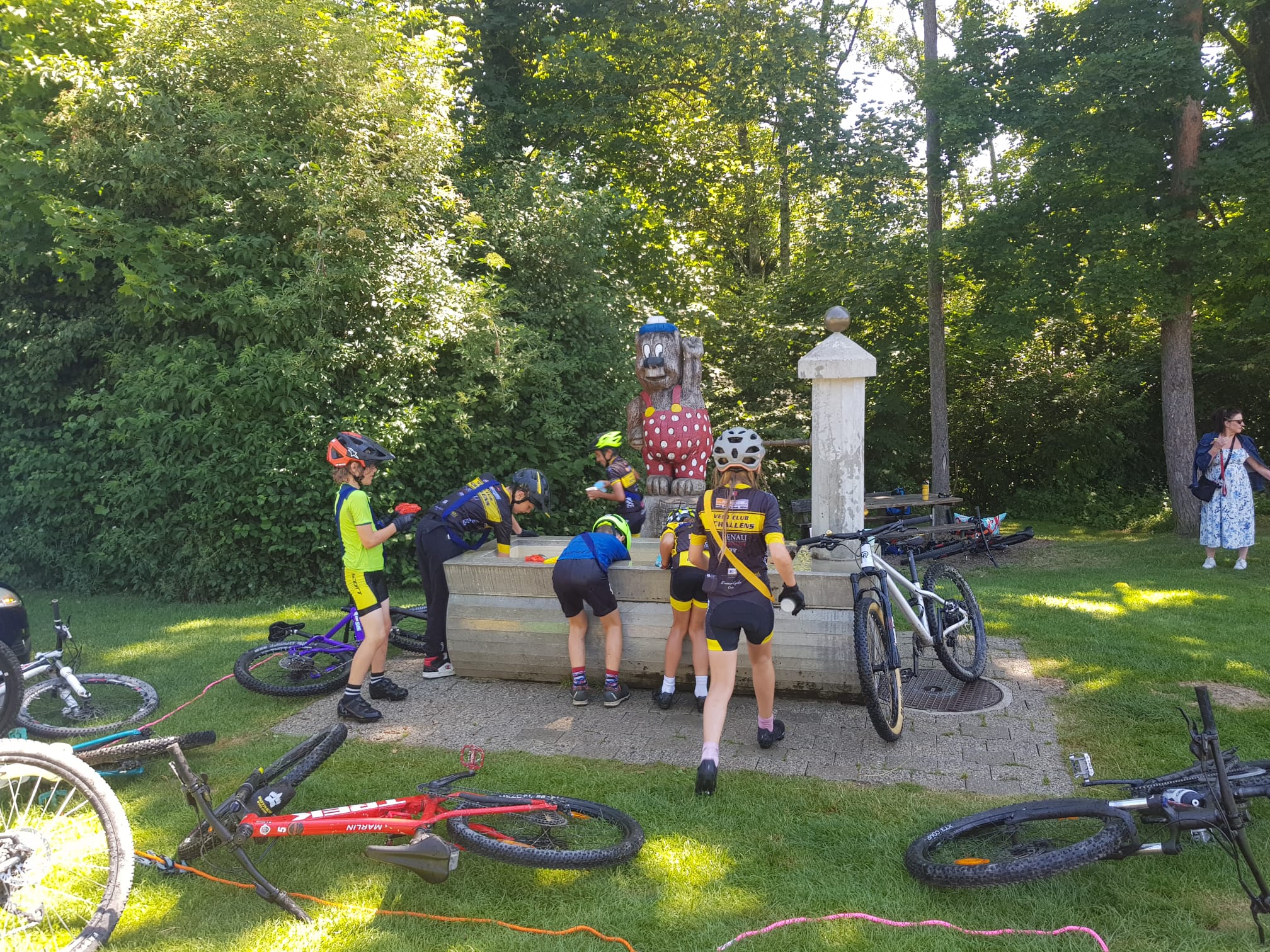 L’Ecole de cyclisme a également vécu son dernier entraînement avant la pause estivale. Le soleil de plomb est venu rassasier nos jeunes autant que les jeux d’eau et tournée de glace! Merci les moniteurs pour cette magnifique première partie!